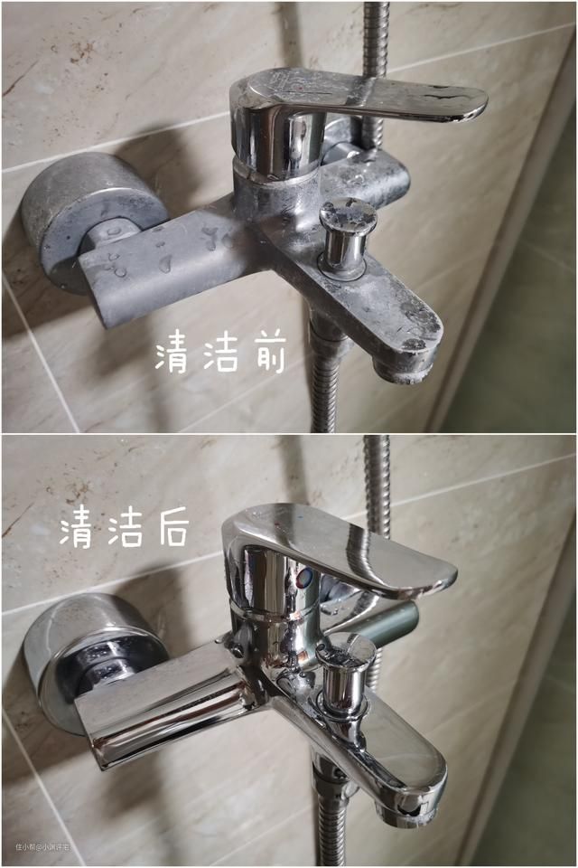 不管是水龙头、花洒,还是镜子、玻璃,只要是脏了,那十有八九就是被这两种东西污染的。浴室清洁剂,就是专门对付这两种污渍的产品。把清洁剂喷洒在需要清洁的物品表面,再用干布、百洁布等工具轻轻擦拭,就可以轻松恢复洁净。