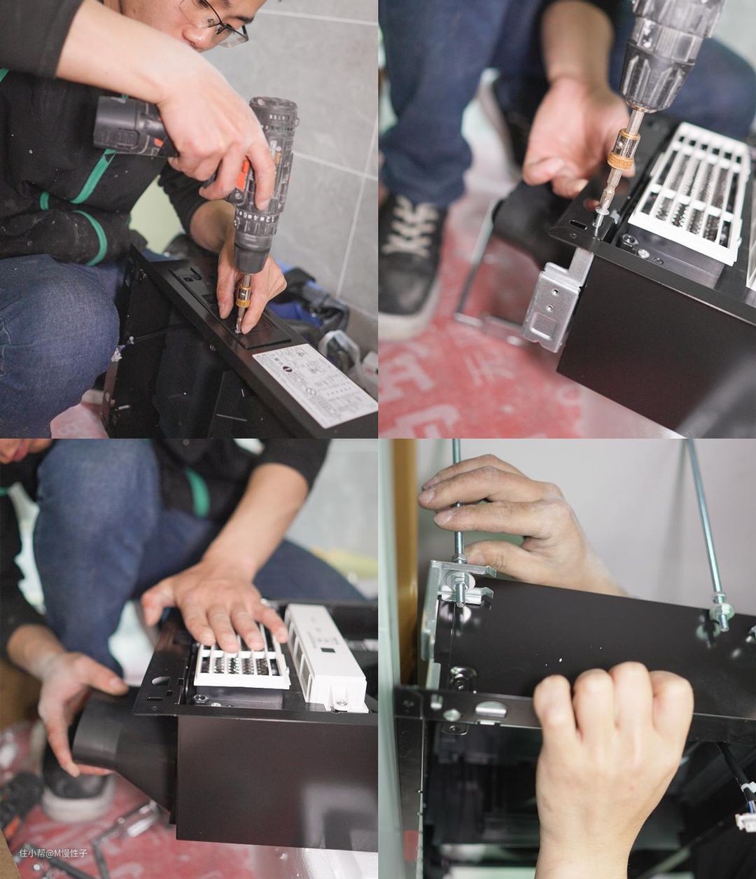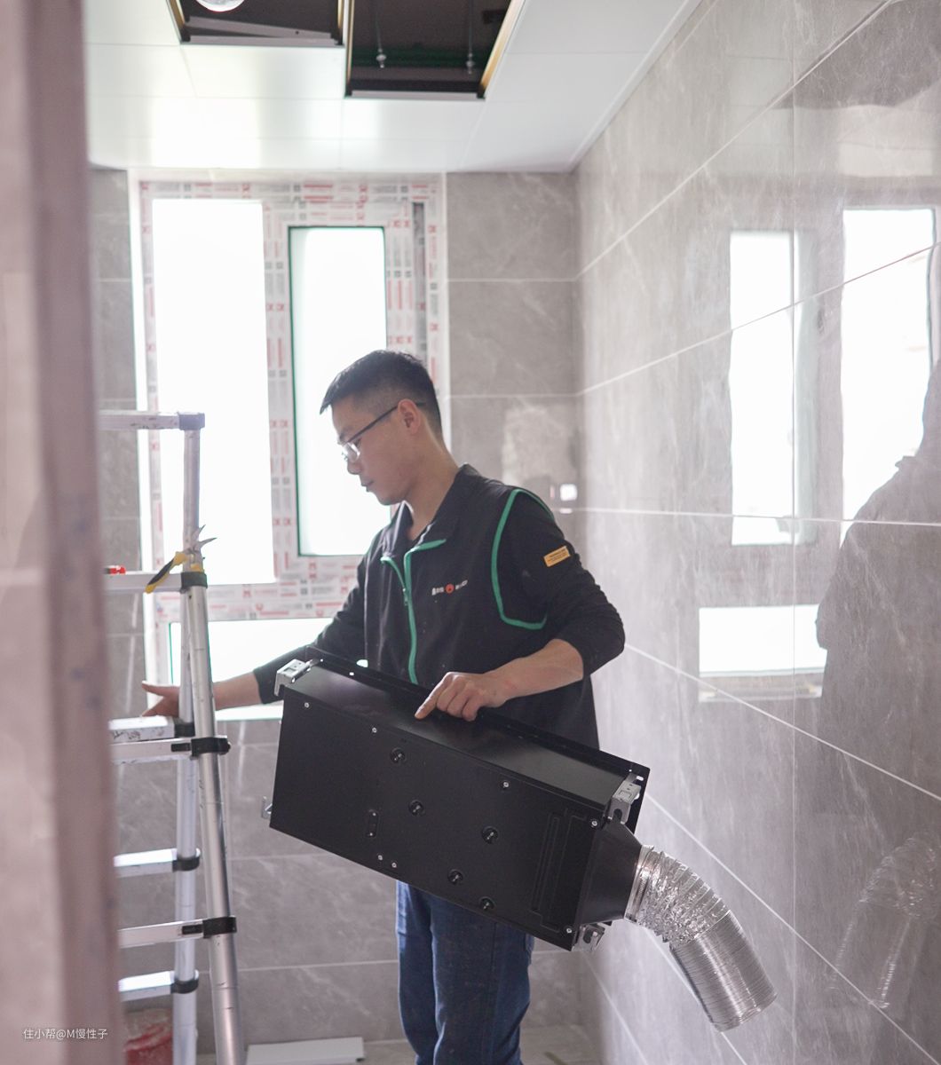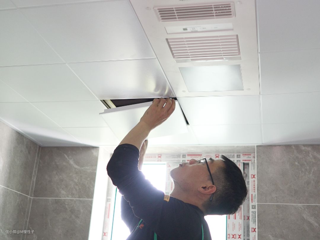 ▼浴霸的主机外壳材质方面也与一般的不同,采用了全金属的外壳,比塑料的要更耐用安全性更高。安装师傅的动作十分娴熟,一个人就完成了安装,不需要业主帮忙。