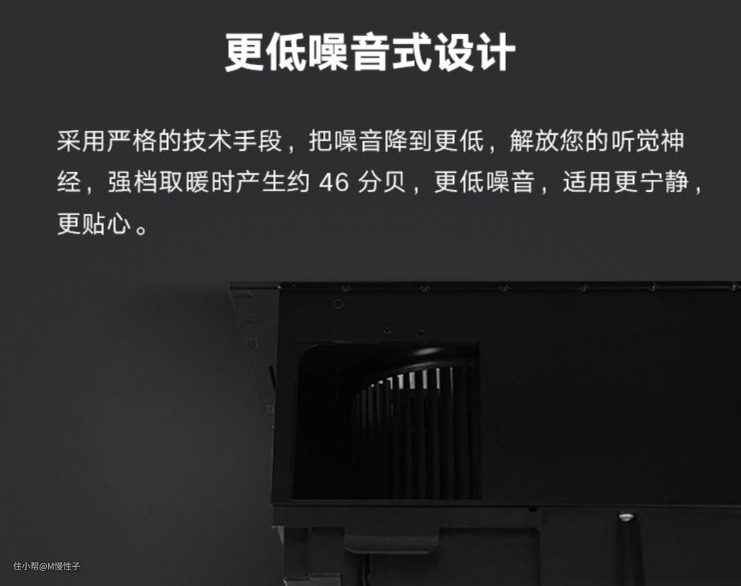 ▼之前我们说了,风暖相是要产生噪音的,而噪音来源有几个方面,一个是电机,二是风噪。这就考验是否使用的是优质的降噪电机,第二就是风路设计是否合理,是否有吸音材料等等。我们一般在产品的介绍页会看到相关的介绍,