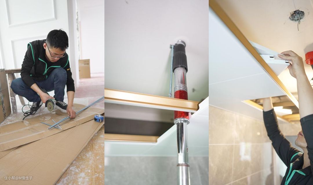 ▼集成吊顶和浴霸是同一个师傅安装的,这样也不用再耽误一天时间,半天时间就全部安装好了,可以看到不管是龙骨的粗细,还是铝板厚度,都比我之前老家装的杂牌产品要好的多。