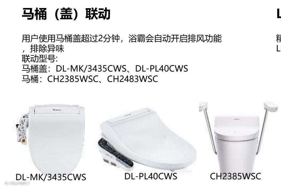 ▼以往的浴霸智能联动更多只能做到灯光的联动,开关个灯。而松下有着完整的卫浴解决方案,当使用松下指定型号的马桶后,超过2分钟浴霸会自动开启排风功能,做到真智能联动,在日常使用中,我们不用做多余的动作,潜移默化自动完成的智能联动,才能称的上真智能联动。