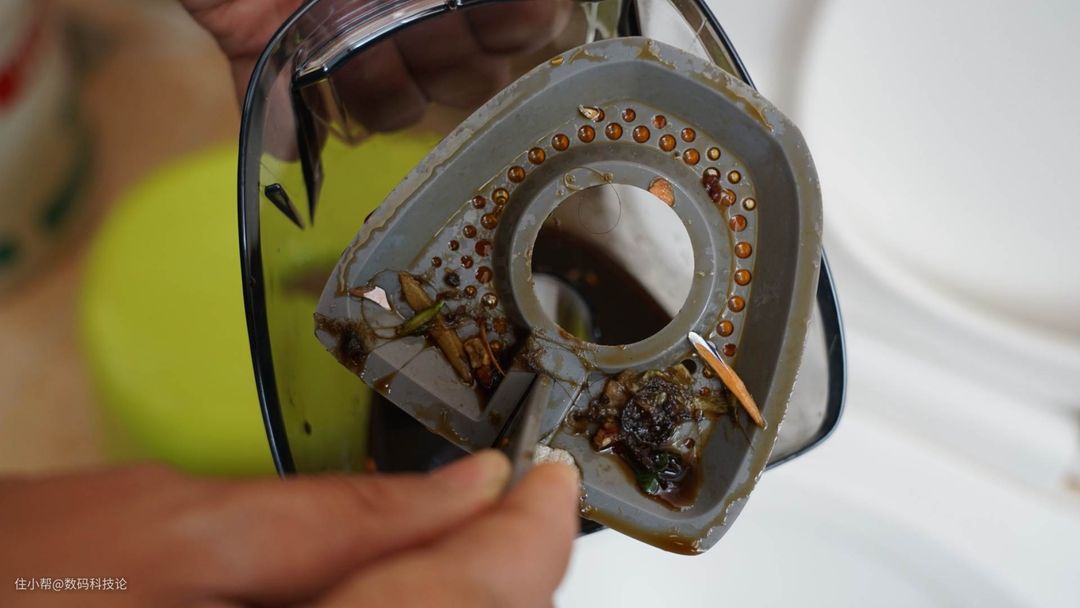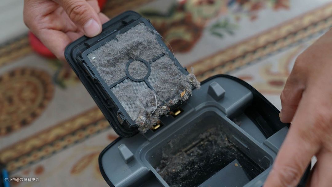 另外从内部结构来看,污水箱可以分解为四大部分,双层滤网、污水箱上盖、颗粒垃圾分离器,以及污水箱。