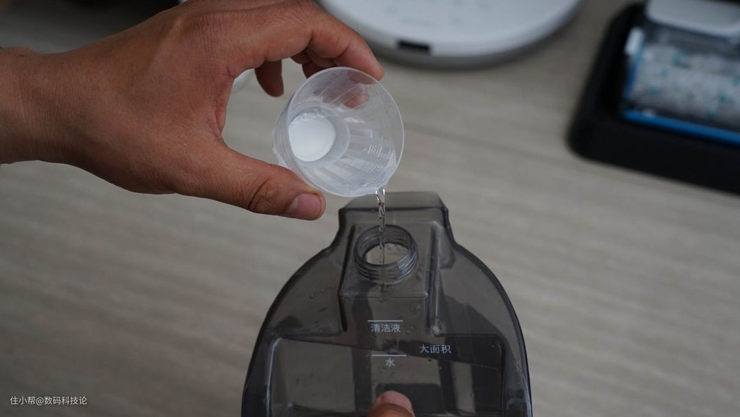 再比如加清水,只需要按照清水与清洁剂刻度指示,添加水与清洁剂即可,不用担心清洁剂加多或者加少的比例失调问题。