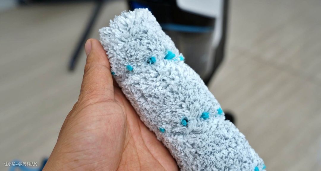 复合滚刷就比较完美解决了这个问题,点状尼龙点可以当刷子清洁顽固污渍,高密度超细纤维不论干湿模式都很柔软,擦洗接触紧密,不伤地板。