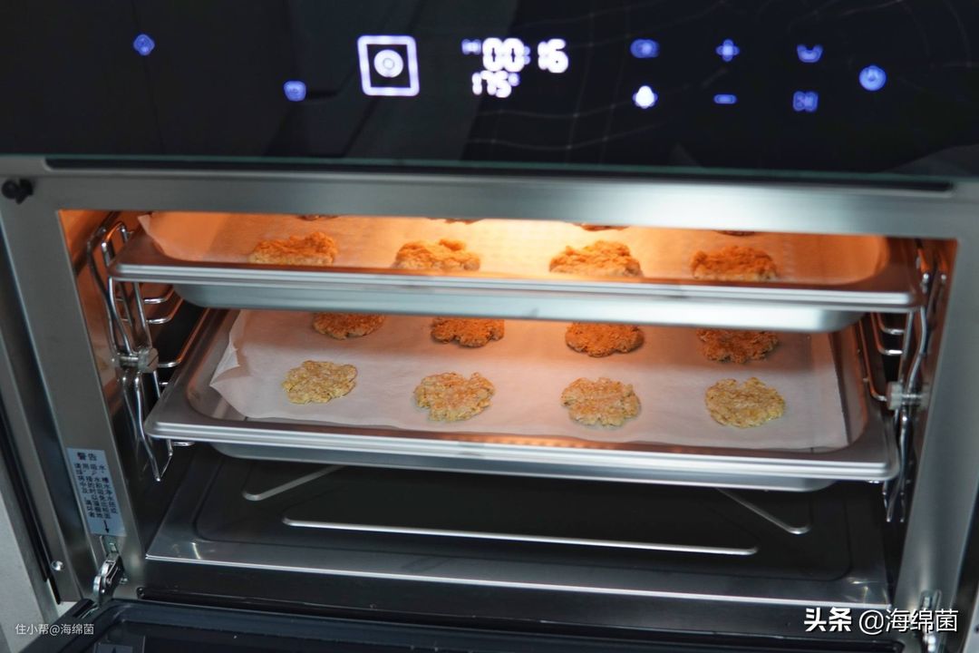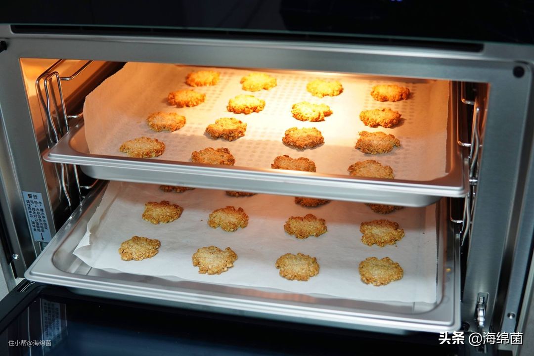 只需要用烤一次的时间,就能得到多盘饼干,且我们可以看到饼干的上色和烤制程度基本是相同的,本来烤两盘饼干需要单独烤两次耗时45分钟,现在一次20分钟就能搞定了。
