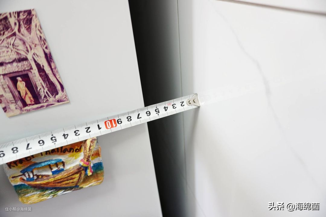 因为冷藏区域一般都有抽屉设计,足够的间隔才能保证抽屉能顺利打开,我实测了下这款冰箱最小靠墙间隔需要6cm左右,这样开门后抽屉才能正常使用,当然不同的冰箱要求会不同,以实测为准。