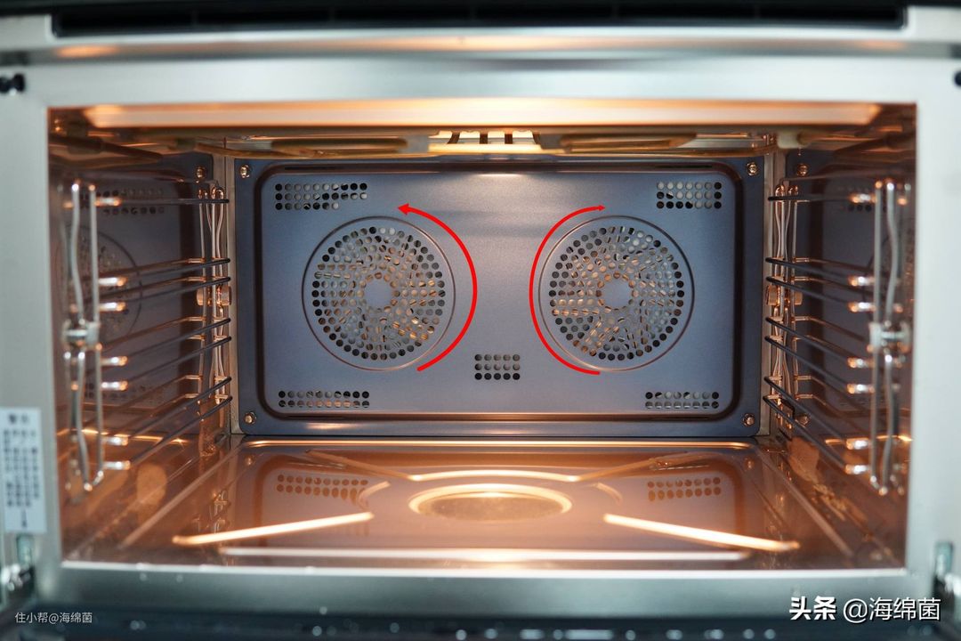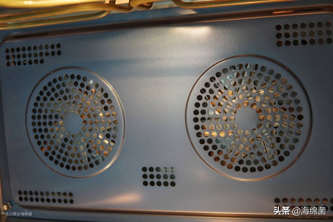 且双热风采用了逆向设计,也就是两个风扇往相反的方向高速旋转,这样热风在烤箱内的对流会更加的彻底,同时让烤箱内的各个角落的温度都变得非常均衡,因为新增了PID算法,温控幅度更加的精准,温幅变化很小,菜品的成功率和上色度都更好。