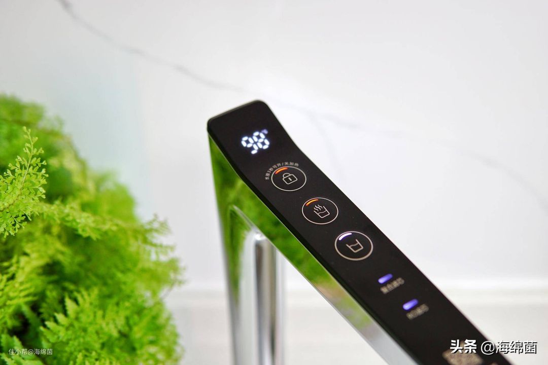 龙头上能看到热水温度显示,以及三个按键,可以直接取用过滤好的冷水,也可以接热水。内部加热罐的容量是2L,过滤好的净水进入加热罐后烧开,随后保持在98℃,全程不与空气接触,没有二次污染的问题。2L开水用完之后机器会自动补水,再次自动烧开。