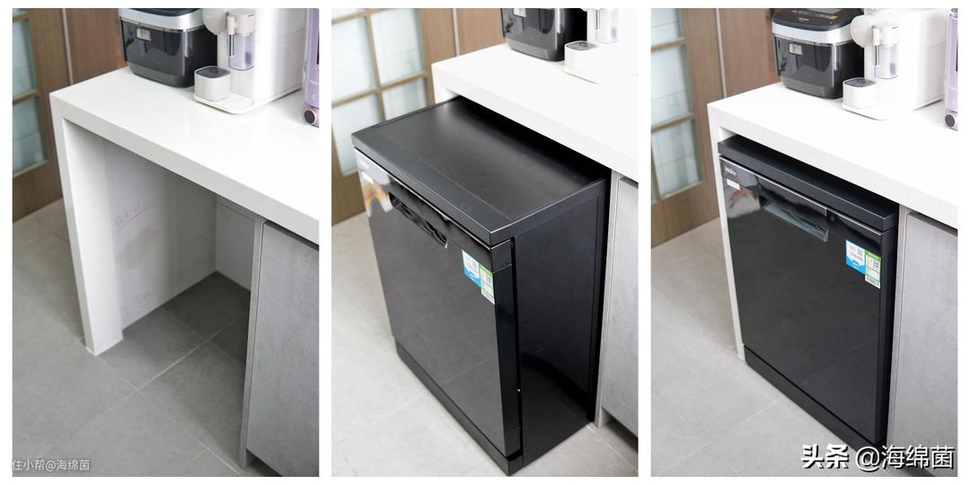 水电下水之类的直接装在侧面柜体就好了,机器就能尽可能推入台面下方与橱柜齐平。