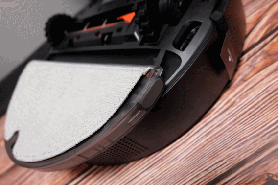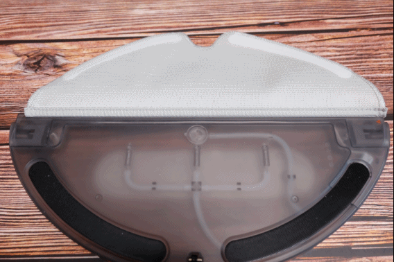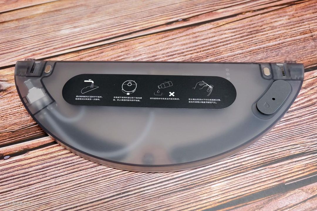水箱使用前安装在扫地机底部,清扫完毕后,最好取出,因为湿抹布对木质地板不友好。