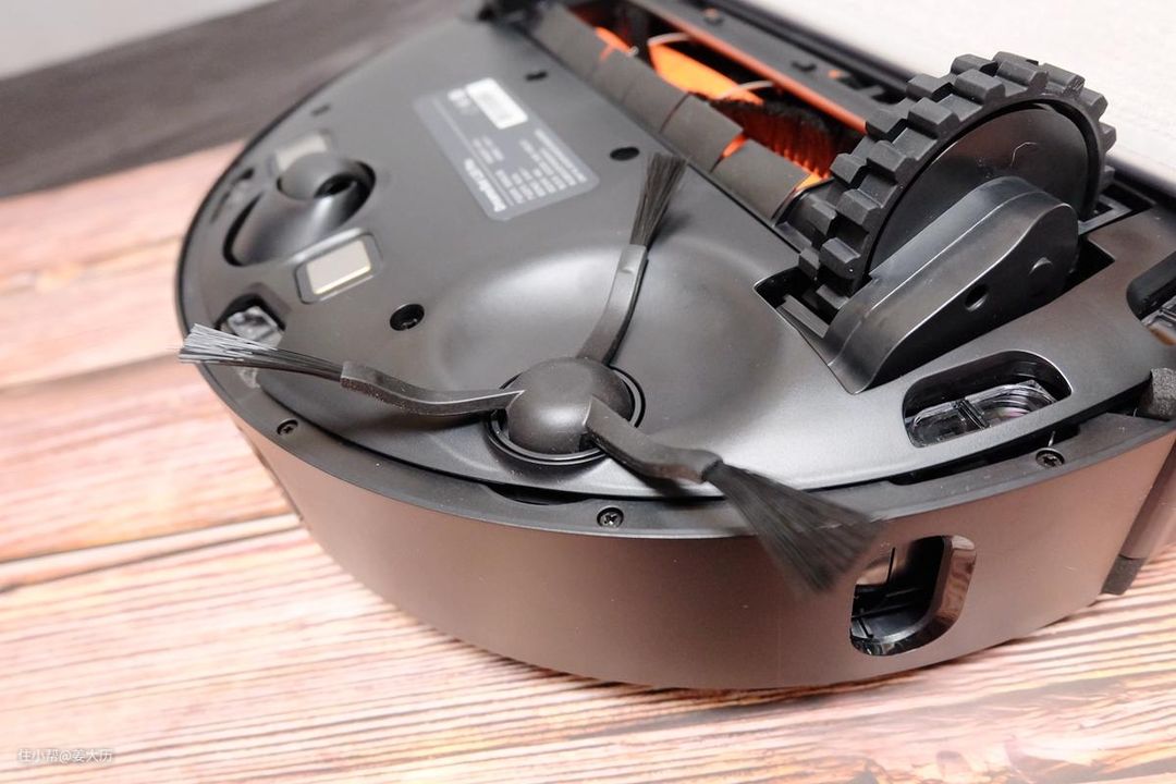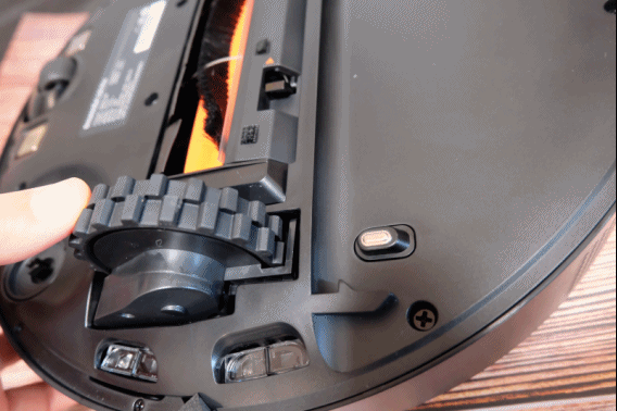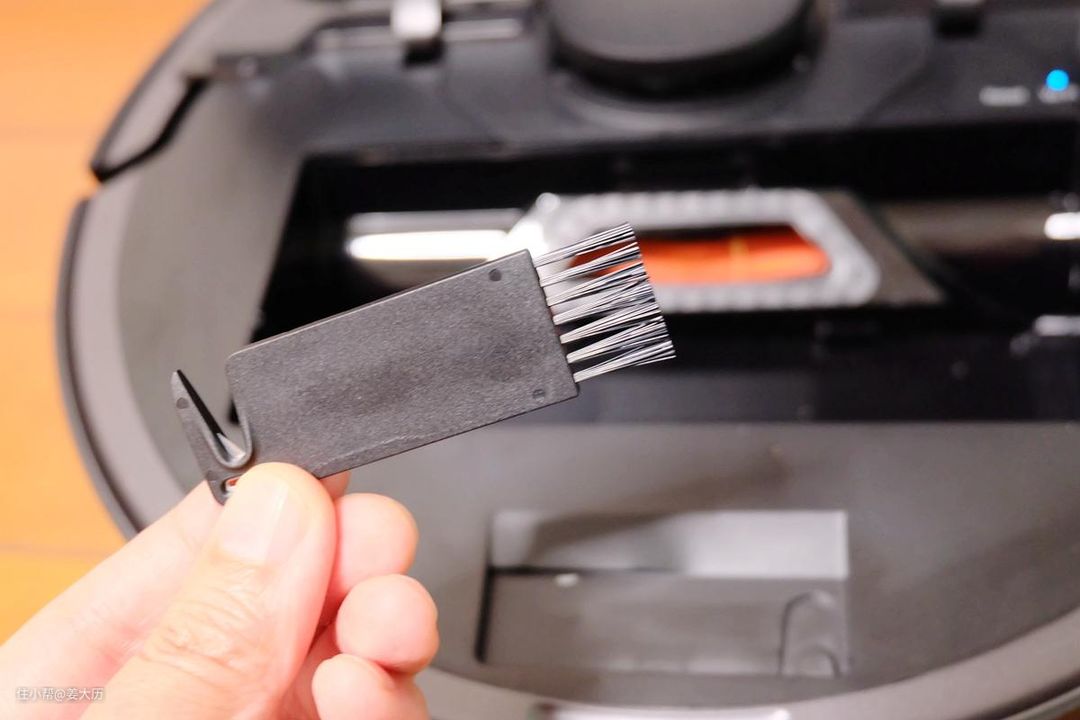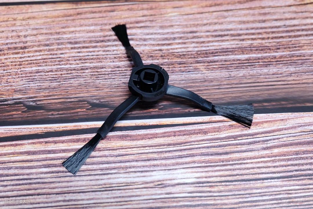 安装边刷,“咔哒”的声音后,表示安装到位。边刷高速旋转,凝聚灰尘,让扫地部分更加方便。