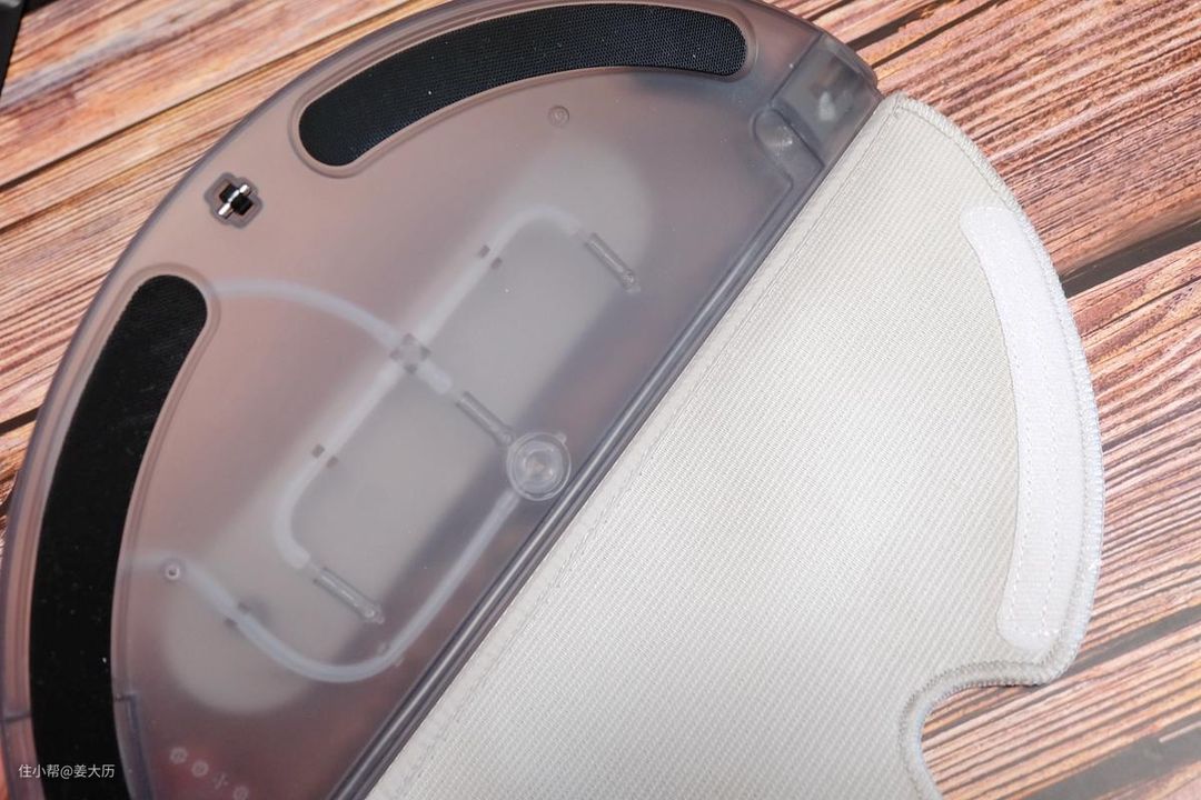 水箱的容量在270ml,清扫时智能调节水量,均匀出水,有效保护地板。抑菌抹布,阴离子抑菌层,有效抑菌湿拖,工作30分钟后,可以将抹布拆下来清洗。操作起来非常方便。