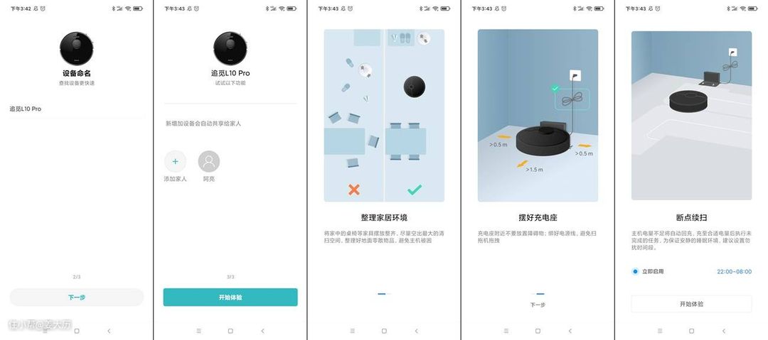 初步连接后,有提示分享给家人,还有使用充电电源的环境要求,确认后可以体验清扫。