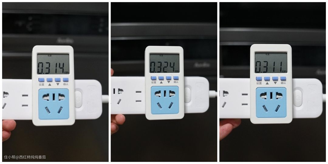 接下来在三种不同的半载洗模式下进行测试,三次分别耗电 0.314kWh、0.324kWh和 0.311kWh,数据非常接近。我们由此基本可以认为:三种不同半载洗模式下耗电量基本相同 ▲
