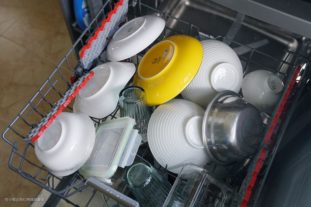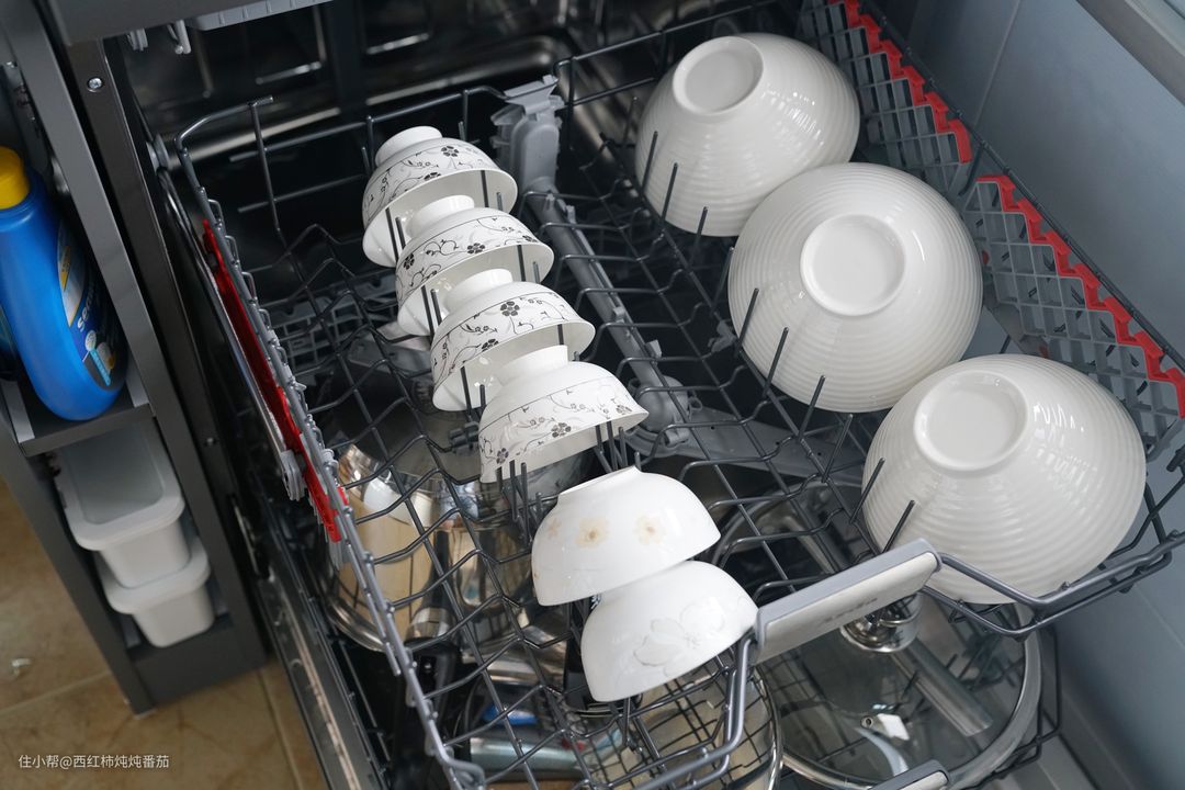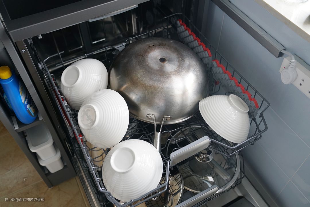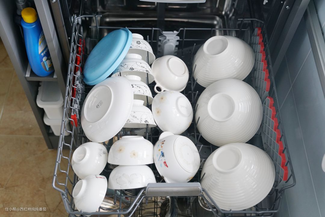 接着我们继续看这台 Arda洗碗机的容纳能力,顺便展示碗篮在日常使用中的一些细节。