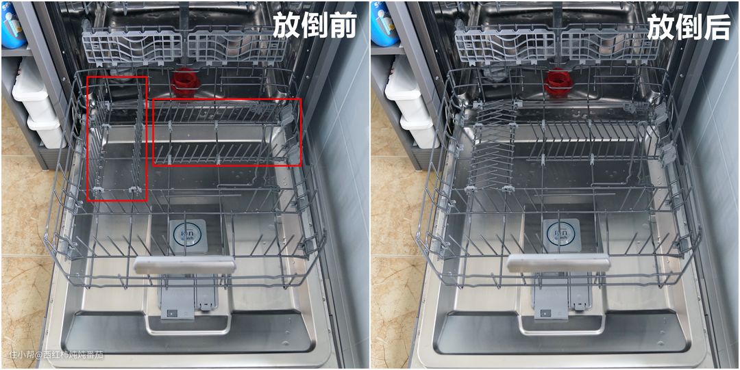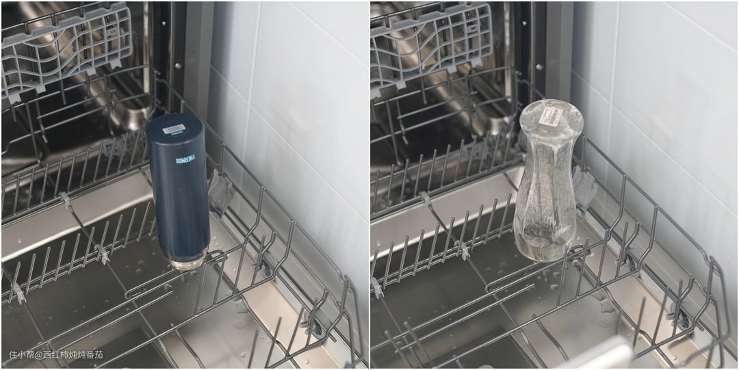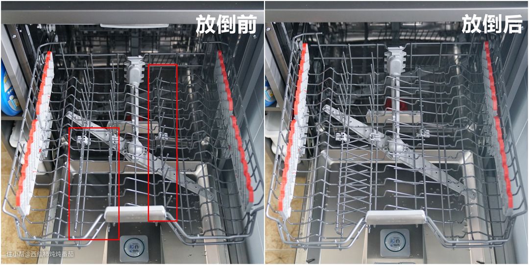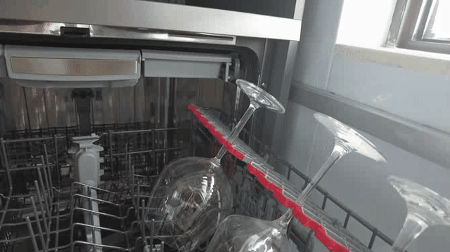 虽然这台机器也专门配置了一个独立的筷篮,但是显然,将刀叉筷子直接平铺摆放在顶层会更加顺手得多得多。此外,底层可以腾出原本用来摆放筷篮的空间,在容纳大件餐厨用品的时候,也会更加畅爽。