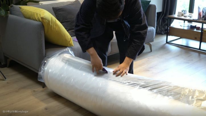 床垫采用的是“真空压缩卷包”的包装方式,在运输上十分的具有优势,用自带的小刀划开,就可以轻松的完成整个开箱,1分钟左右就可以恢复至床垫的厚度。