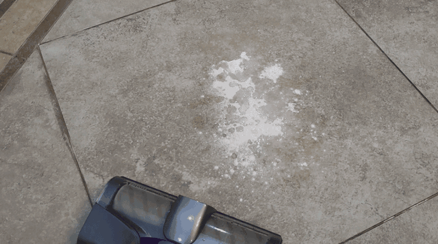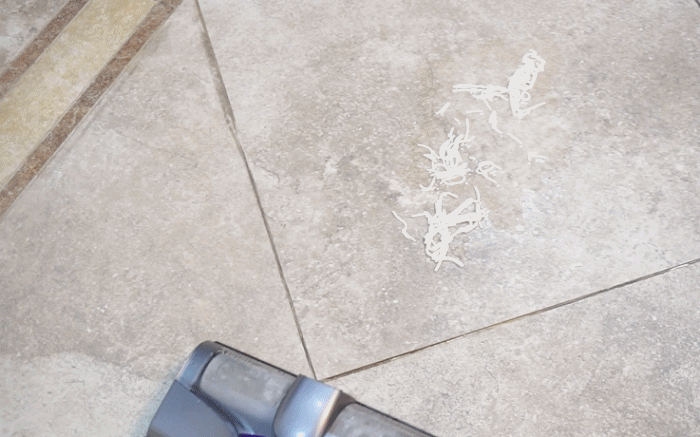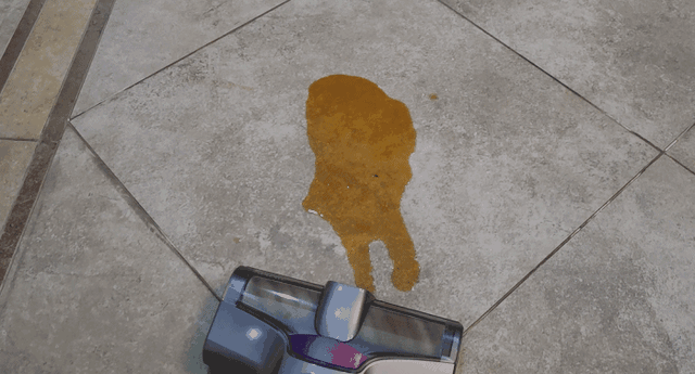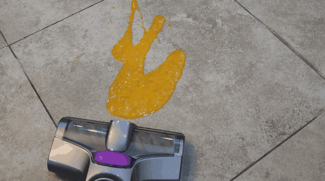 大家都知道,打散后的鸡蛋液是最难清理的,作为对吉米X8的考验当然不能少,可以明显看到蛋液被卷入滚筒中并吸入,洗地机过后,地面已经完全干净,看不到一丝的蛋液痕迹了。
