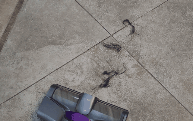 而吸尘器和扫地机器人还拍的就是卫生间掉落的头发,特别是打湿后,不仅很难吸走,而且也容易缠绕,抱着尝试的态度,试试了湿透了的毛发,发现吉米X8过去,瞬间被吸入,看着这个过程也是很有治愈感,以后再用不用蹲着用手去捡了。