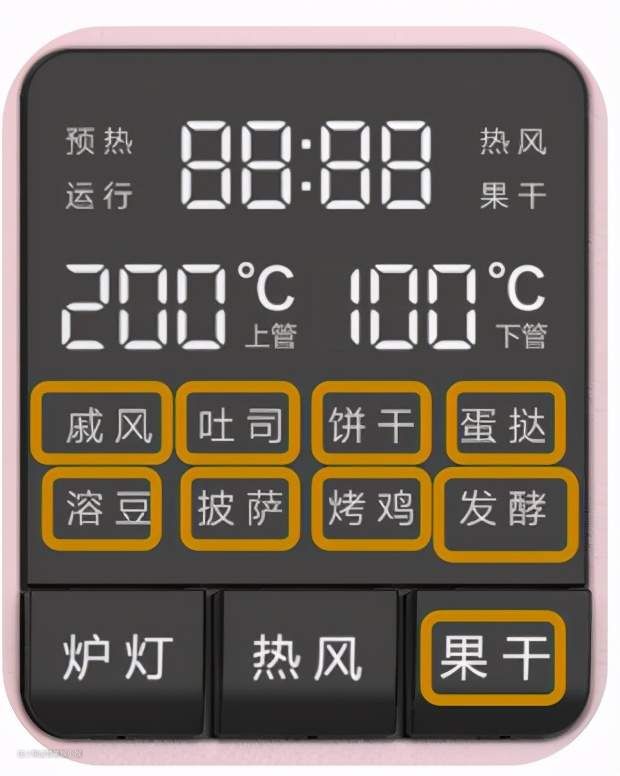 对于烘焙新手来说,如何把握每次的烘焙时间以及温度都需要查阅大量资料,而目前部分烤箱则将一些成熟食物的加工温度和时间固化到多功能菜单按键中。只需要做好食材一键加热就可以完成烤制工作。