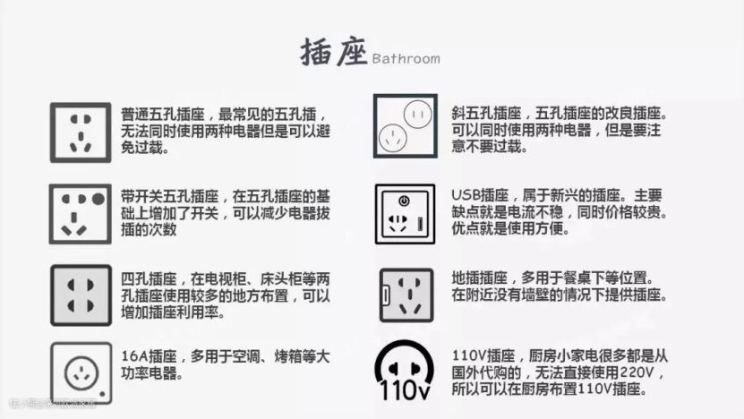其实每个人生活习惯和装修户型都不一样,上面所给的插座清单是在装修的时候给大家参考,大家根据自己的实际情况理性借鉴。