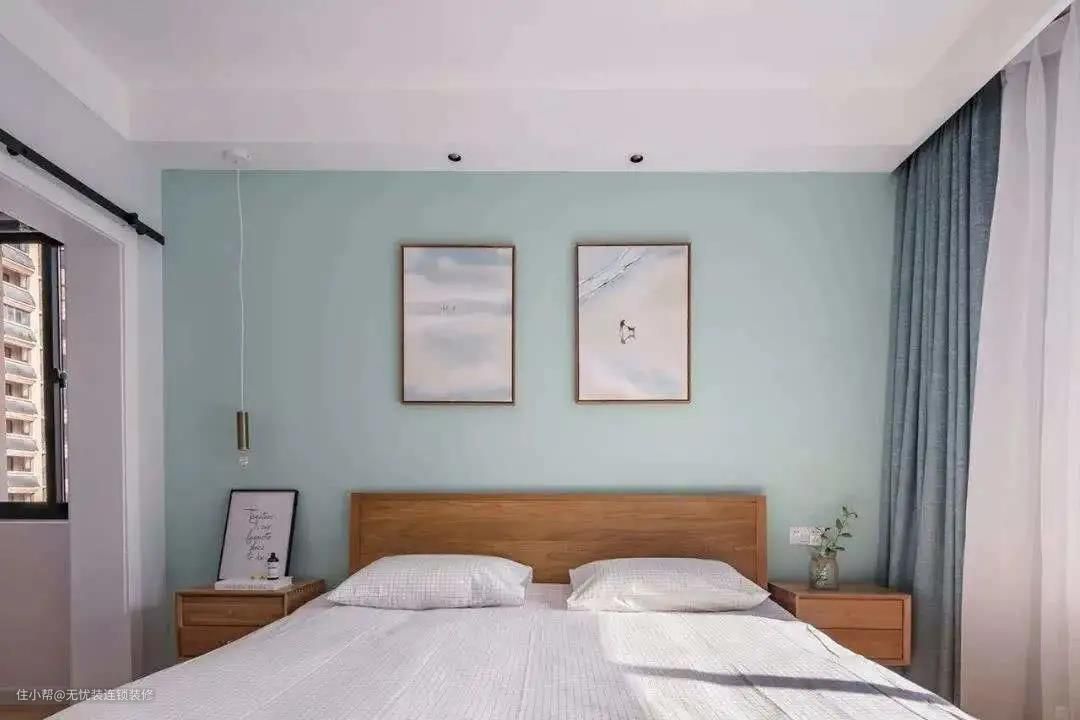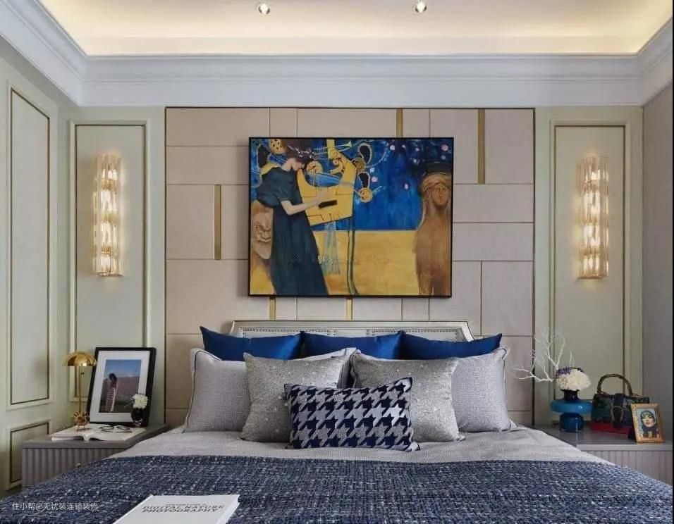 大家前写道过,1.8米的卧室床上,最好是挂一幅1.一米上下的画。但假如这幅画的高宽比不足,大家就可以提升这幅画的总宽——让墙上装饰画比卧室床略小就可以。例如一幅1.6米的墙上装饰画,就挺适合。