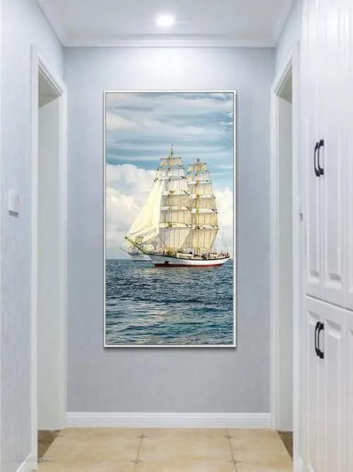 像前原文中常说的入户玄关墙,整块墙壁就一幅画。这个时候画的高宽比,就应该是路面到吊顶天花板造型设计中间间距的3/5上下。