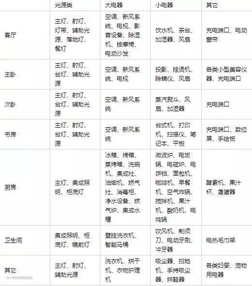 除了计划购买的电器,也要考虑到未来可能添置和更换的电器设备,即使当前不在购买计划内,也应该预留空间和电位,应对以后生活中发生的进化和变更。