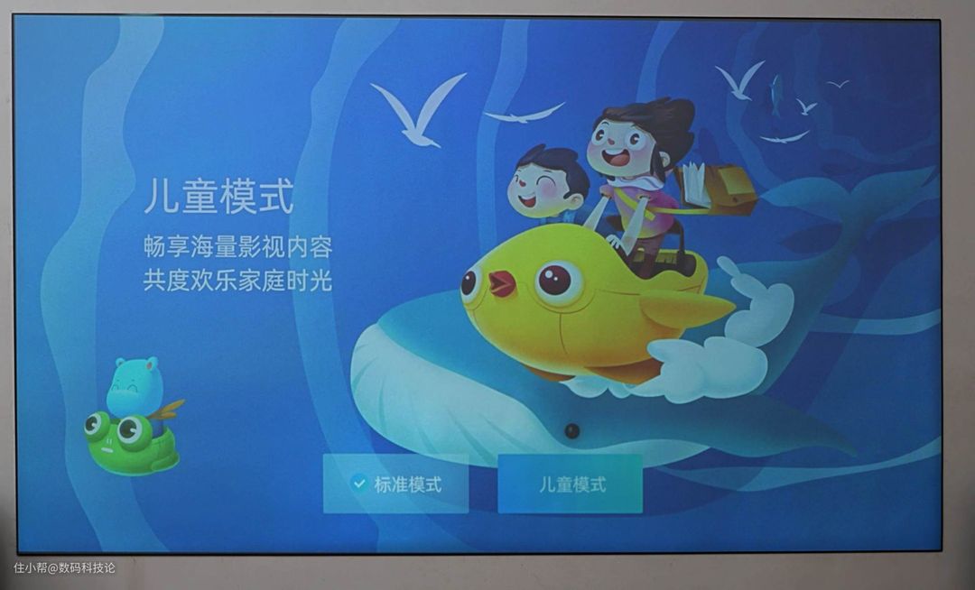 还有就是当贝OS系统有专门的儿童模式,设置密码后,进入儿童模式以后要再切换回标准模式需要输入密码才能开启,这个功能也能防止单独给儿童使用期间,其自己不小心跳转到标准模式,查看一些在线的儿童不宜观看的内容。