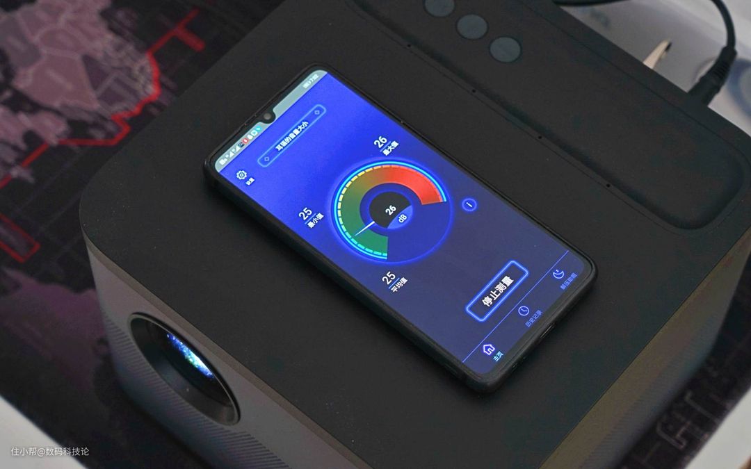 并且当贝F3在使用中,风扇噪声很低,在投影仪设置静音后,把手机放在其机顶粗略测试,只有25~26dB的噪声输出。这样的噪声表现,基本和白天家里无人时候的背景噪声差不多。风扇噪声低的另一个好处当然就是,看电影或者用当贝F3听歌时,背景更干净,不会被主机的风扇声所打扰。