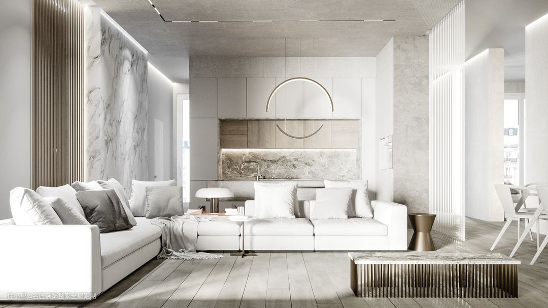 对于大多数人来说,客厅是一个休闲区域,他们不想要电视,也不想要其它。他们只想保持宽敞整洁的格局,以自然舒适的质感,一家人共同坐在这里聊聊天就很满足了。