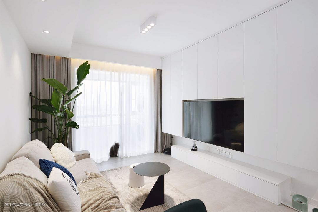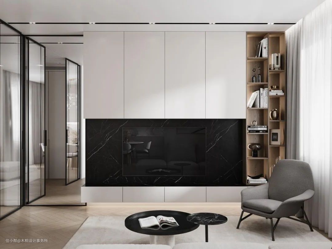 印象中,所有装修的柜门都是应该配拉手的。而如今,现代人都以简约为美,各种花里胡哨的柜门把手逐渐消失于我们的视野之中,存在有存在的道理,那么消失自然也有消失的原因。设计里收纳部分占据很大的比重,增加定制后给人的都是厚重的感觉。所以设计师通过特殊的设计手法,去除把手,把柜子的存在感降到最低,这就是继“无主灯”之后的另一个“新秀”→“无把手”设计。