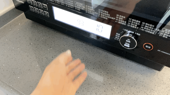 拉开门板,就能看到东芝引以为傲的石窑拱型炉面设计。在几家老牌水波炉品牌中,要说“烤”功能的话,东芝可以说是一骑绝尘。