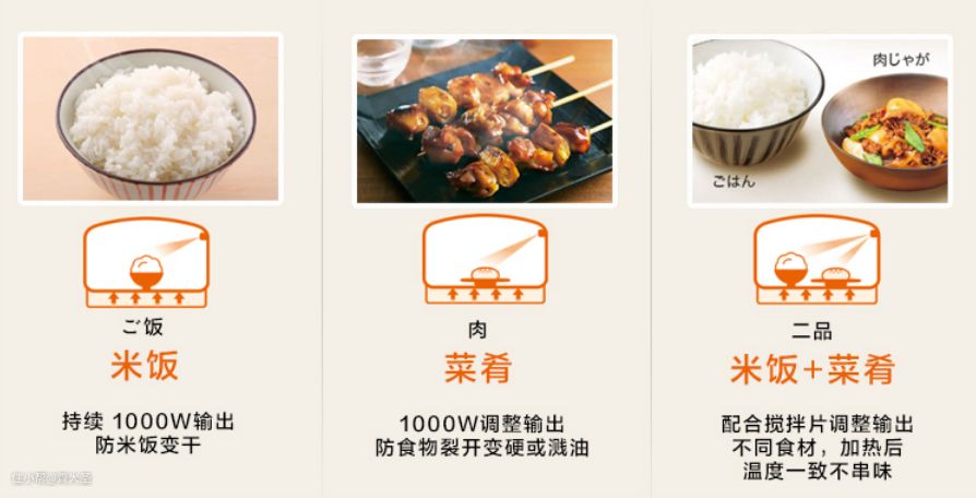 ②8眼摆动扫描式智能定位红外传感器(1024点红外线),定位食物的位置和分量,检测表面温度,加热到刚好的温度。
