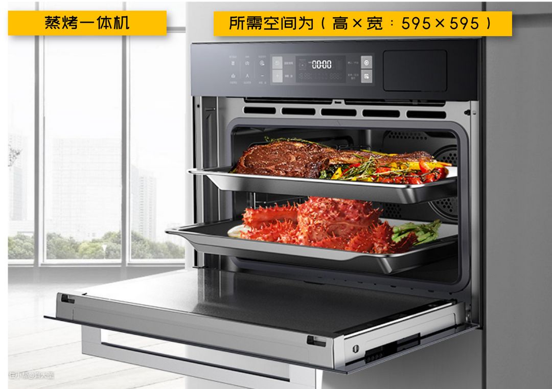 目前蒸烤一体机市占率逐年攀升,其实也离不开厨房空间的逼仄。毕竟相比单体的蒸箱+烤箱,蒸烤一体机可以节约一半的空间。