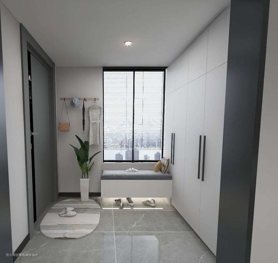 最好的解决方法,是在玄关柜中部、鞋柜底部、门镜后方等空间使用灯带,对空间进行提亮。