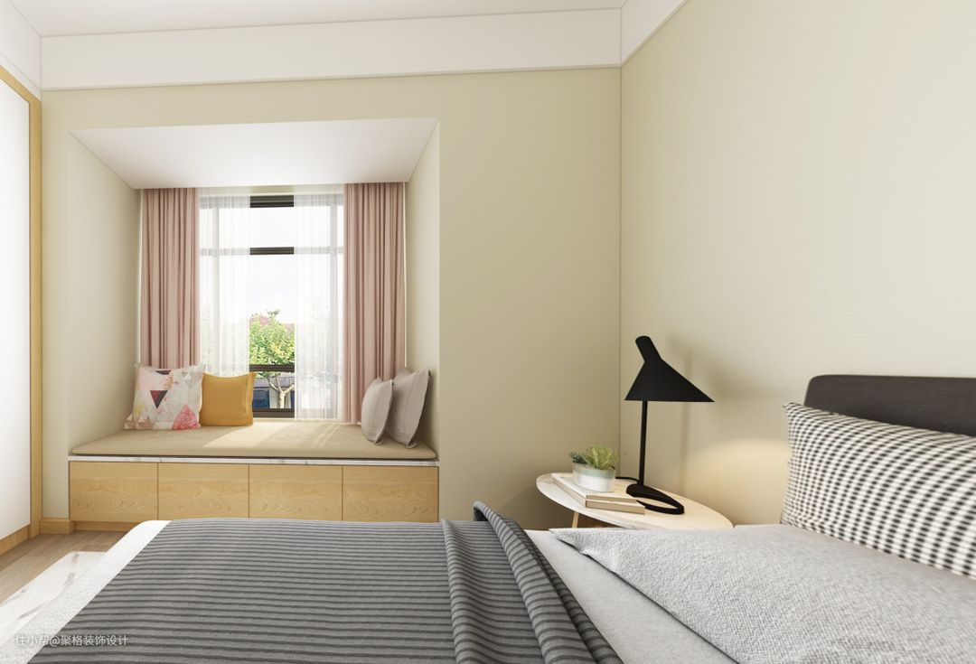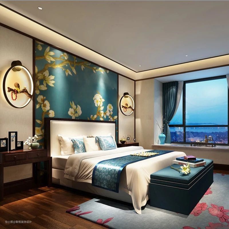 完美的卧室必须在整体照明和床头照明方面进行精心设计。整体照明是必不可少的,但应避免躺下后光线进入视线。如果你的卧室特别大,可以适当在吊顶中增加灯带,提升整体照明效果。而床头灯光,通常是为了起夜而设置的,因此安装床头柜台灯、落地灯、壁灯都是OK。