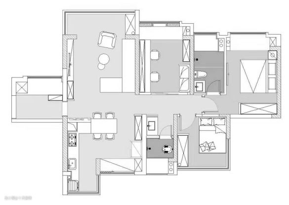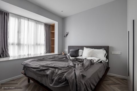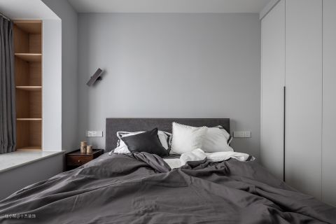 以高级灰的优雅诠释北欧风的气韵,最是迷人不过,简约的线条迎合着浅灰色的优雅质感,既雅致又整洁,再加上深灰与白色的床品的进一步补充,整个卧室显得摩登而惹人。
