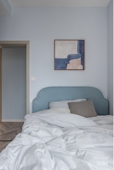 低调而洗练的蓝赋予了这个简欧风空间舒适自由、平静宁和的格调质感,仿佛历经时间与岁月的洗礼积淀,静止的气息里裹挟着浓浓的典雅气韵,让人忘却了一切,只愿享受这一刻的安然。