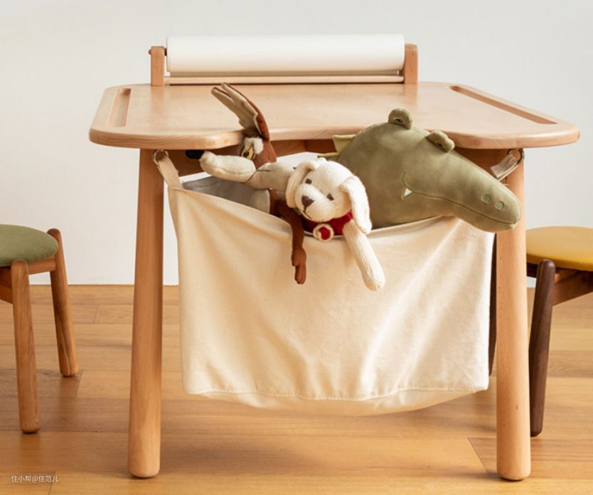 这款游戏桌有三种高度可调,材质便于清洁,设有卷筒画纸支架,桌底能嵌入收纳盒,随时能满足小朋友写作业、画画和做手工的需求。