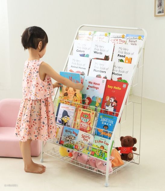 学龄前儿童的书籍以绘本为主,开本较大,而且封面的颜色和图案丰富,用专门的绘本架可以得到充分展示,选取也很方便,让阅读变成小朋友的兴趣。