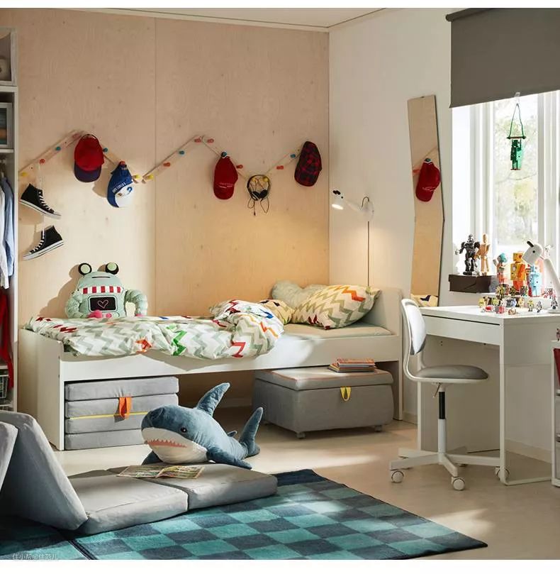 斯莱克是宜家专门为8-12岁的孩子设计的。高床板为床底预留了充分的储物空间。