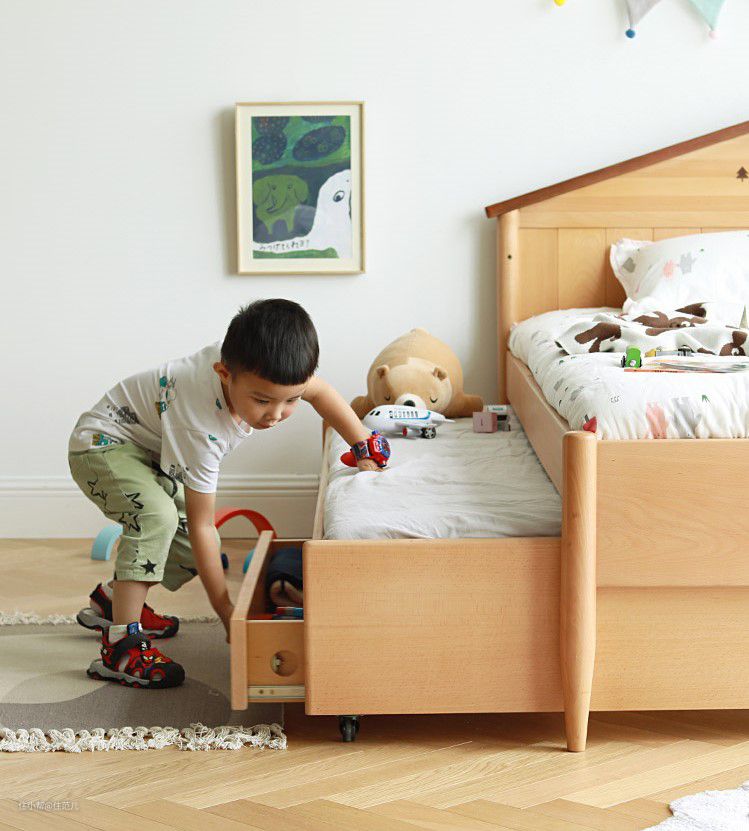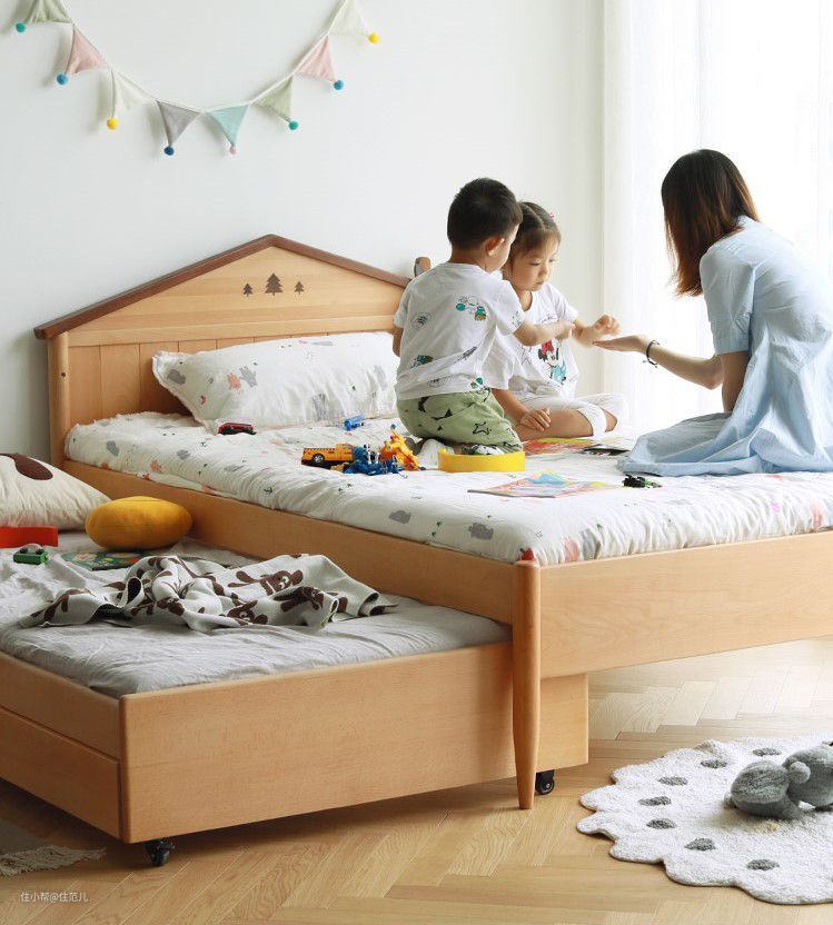 来了二宝后,再添置一个子床,床下还有储物空间。