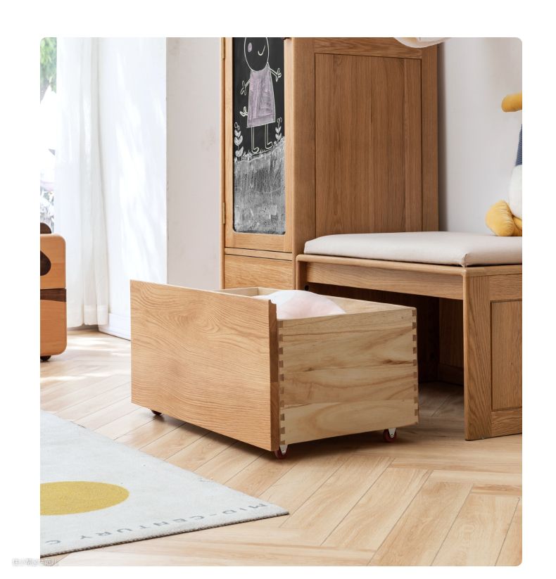 框架采用坚固的木质结构,充分保证安全;塑料储物盒则轻便易拉,小孩子也能轻松搬动。