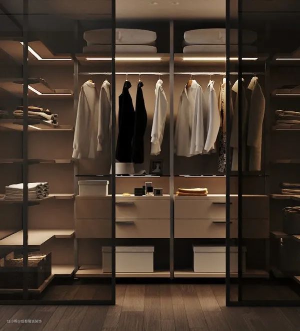 以层板为主,放置叠放的衣物,也可以放置包包、帽子等小物件。但要注意,层板不要做的太高,多于5件就会很杂乱,不方便抽取,但如果不想做太多隔板,做成活动隔板,就可以根据储放的物品高度灵活调节。