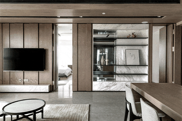 在大户型中,隐形门多用于塑造空间的差别及营造空间氛围感,比如书房中的休息室,卧室中的卫生间,客厅中的工作区,这种又要整体又要体现差距的空间,在套间中塑造别有洞天的感觉。
