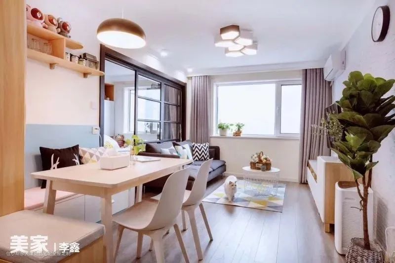 对中小户型而言,LDK设计少了墙体隔断,非常节省空间。横厅户型里,沙发还可以靠窗一侧放置,背后设计个吧台当“靠山”,平时在这儿放松休闲很不错。