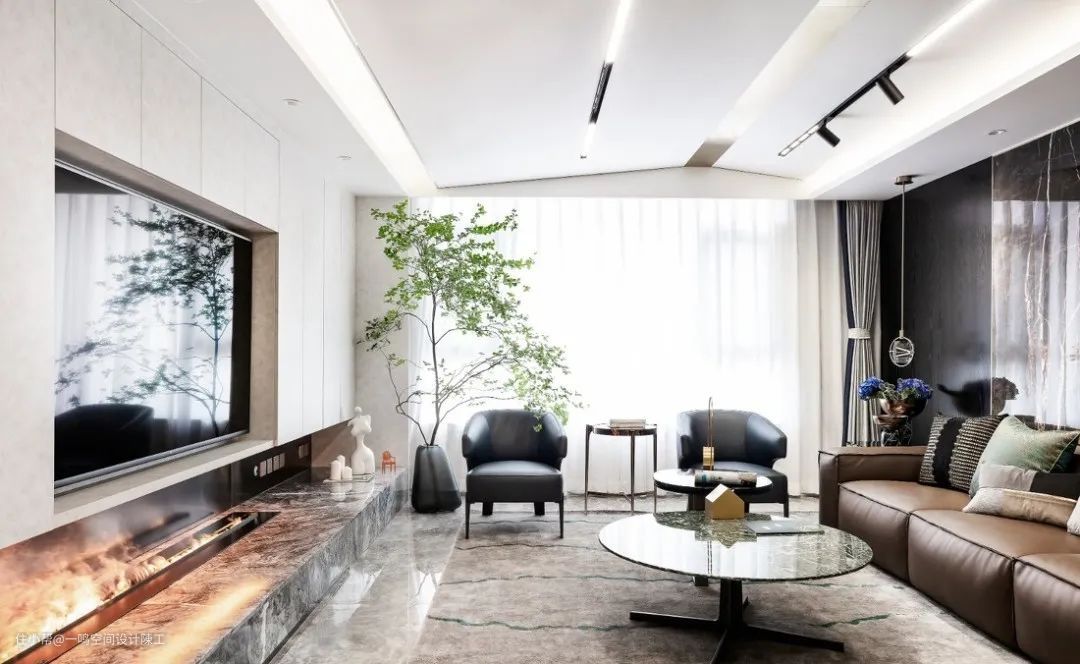 做满空间中的顶面或者仅留一点小的缝隙,不用任何造型和层次,会给人非常好的整体感还可以弥补房屋顶面不平整,并且不会占据太多客厅高度,又保持了简洁利落的视觉效果,不会让人有泰山压顶的感觉,简直太懂事了有没有!