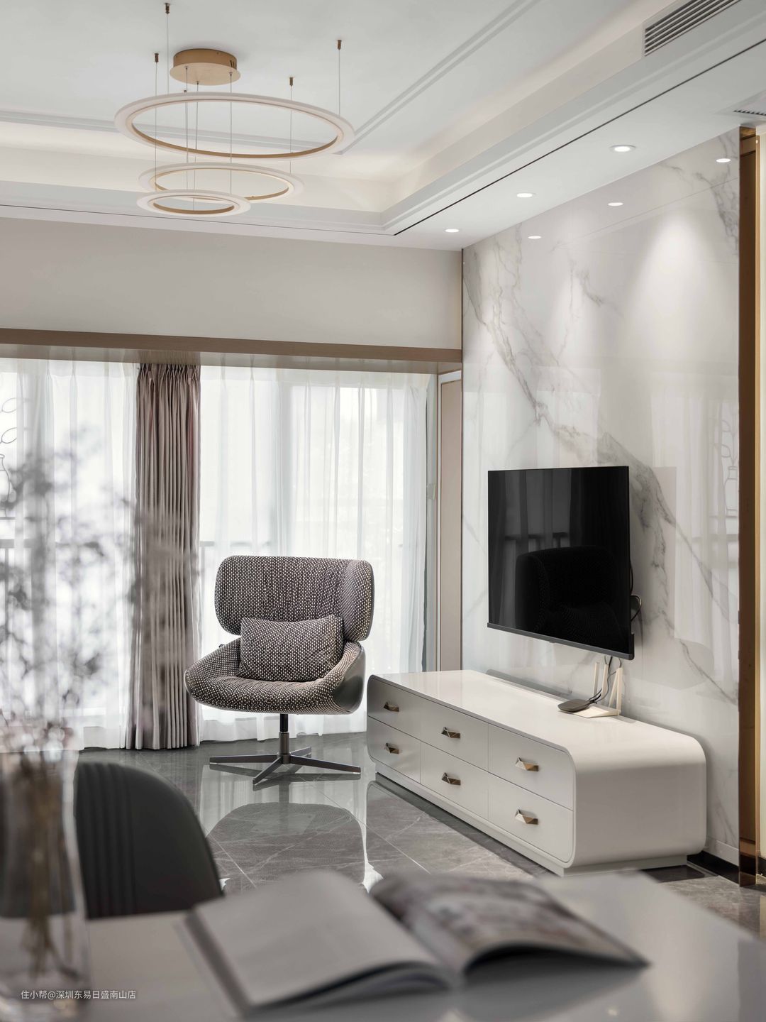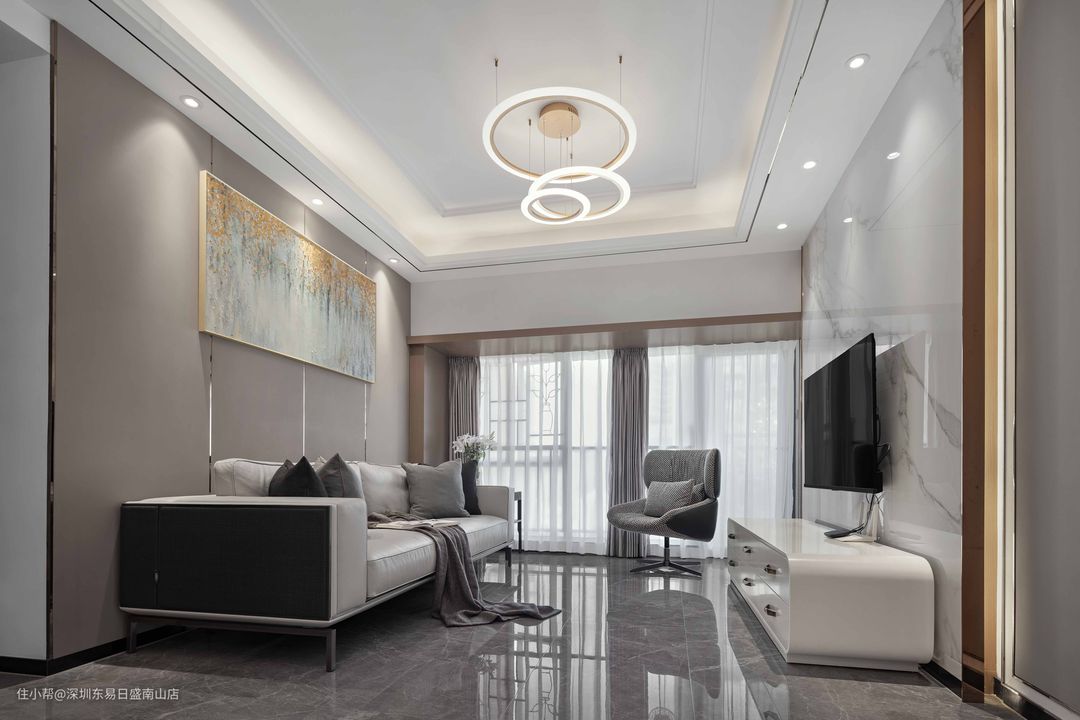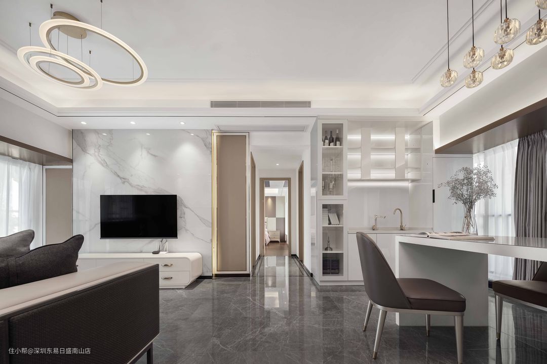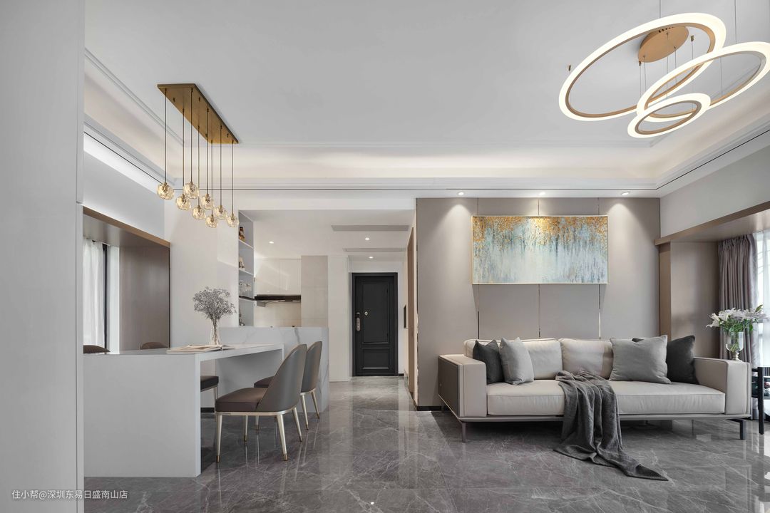 深圳装修:123㎡现代轻奢风,高级灰质感的客餐厅