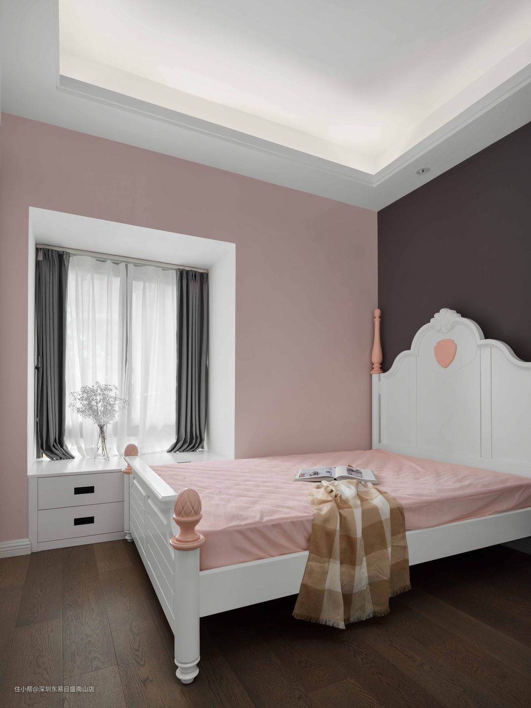 女儿房中的小精致,飘窗做收纳柜,定制的公主粉色床搭配灰调的背景墙,奶油感十足。#女儿房#卧室#轻奢#高级灰